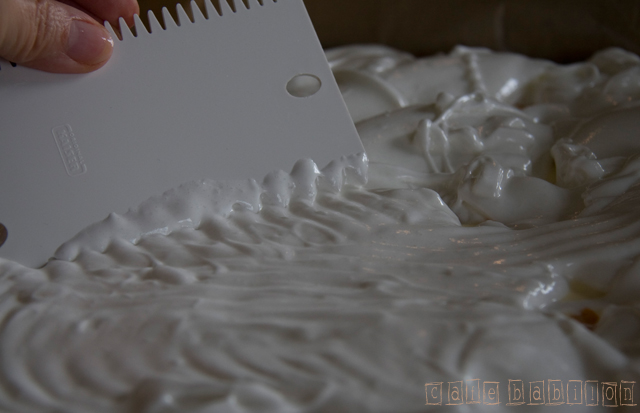 - Białka ze szczyptą soli ubić na sztywną pianę. Dodawać po trochę cukier nadal ubijając. Pianę wyłożyć na ser z brzoskwiniami.